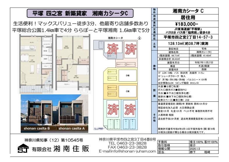 JR東海道本線(東京~熱海) 『平塚駅』 バス8分 稲荷前 停歩4分 神奈川県平塚市四之宮2丁目 |