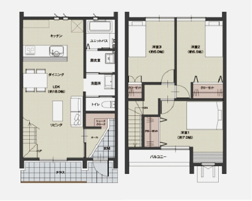 1F:LDK18 2F:洋室6・洋室6・洋室6 |