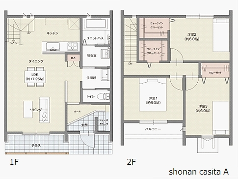 | 間取り | 3LDK | 間取り詳細 | 1F:LDK17.25 2F:洋室6・洋室6・洋室6 | 専有面積 | 89.43㎡ |